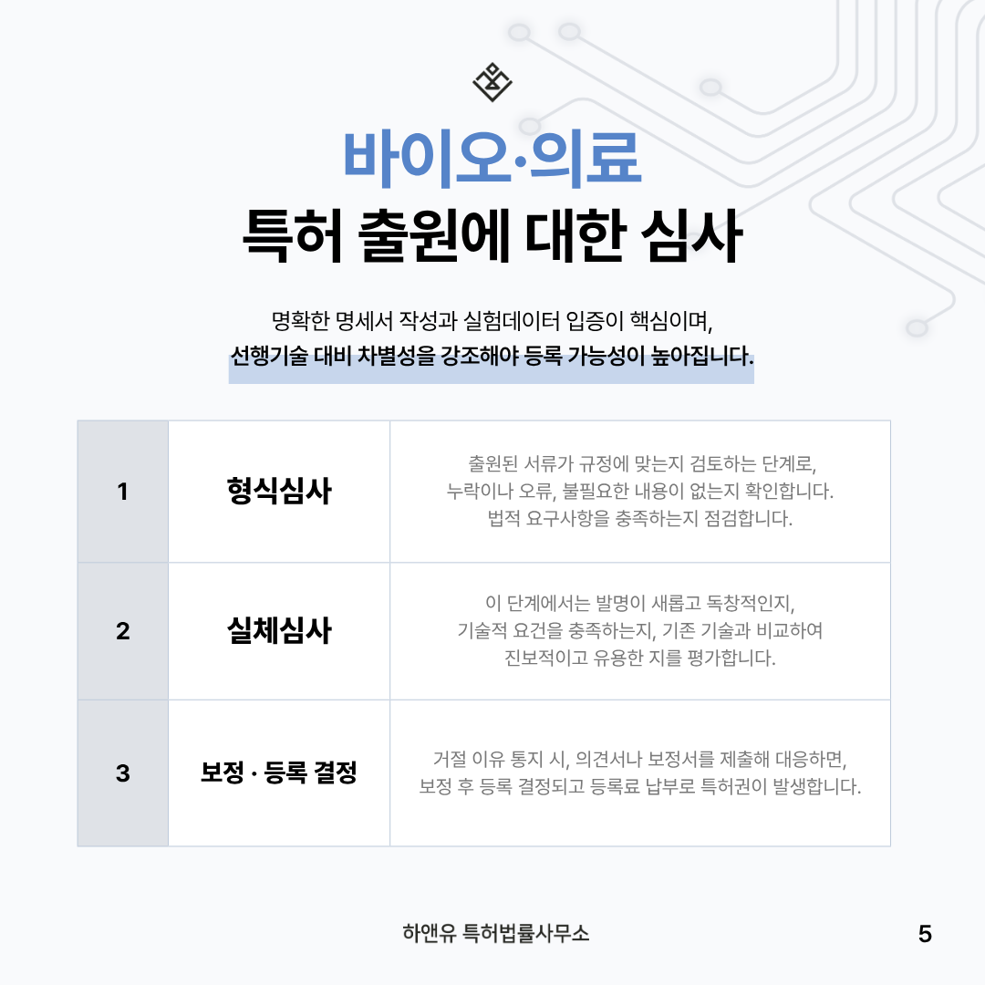 ⑤ 바이오·의료 특허 심사 과정 – 의견서·보정서·등록 결정
