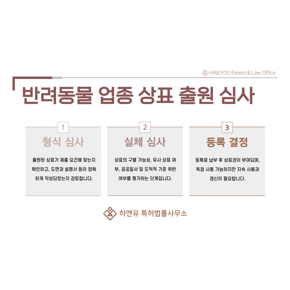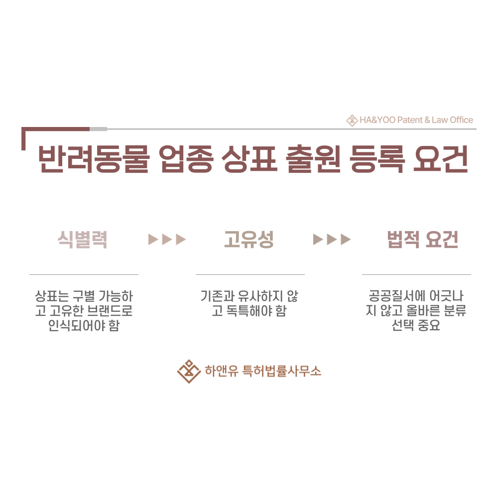 #반려동물용품 #애견용품 #반려동물미용 #애견미용 #반려동물훈련 #애견훈련 #상표 #상표출원 #상표등록 #상표특허 #상표권 #상표권출원 #상표권등록 #상표권특허 #방법 #요건 #절차 #효력 #하앤유특허법률사무소 #TrademarkApplication #TrademarkRegistration #TrademarkPatent