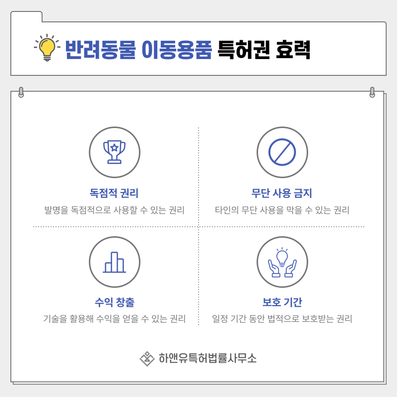 반려동물 이동가방, 슬링백, 카시트, 유모차, 백팩 관련 특허권을 취득하면
