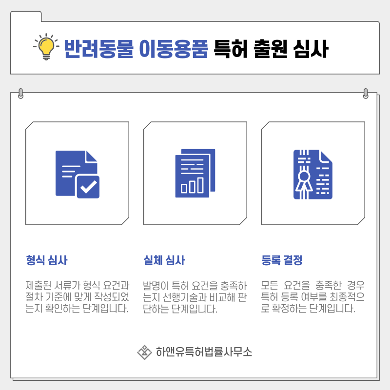 반려동물 이동가방, 슬링백, 카시트, 유모차, 백팩 특허 출원 후 가장 먼저 진행되는 단계는 형식심사입니다.