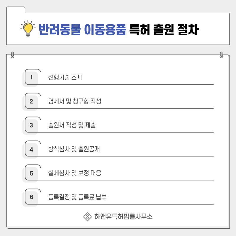 4. 반려동물, 펫, 강아지, 고양이, 이동가방, 슬링백, 카시트, 유모차, 백팩 특허 출원 및 등록 절차