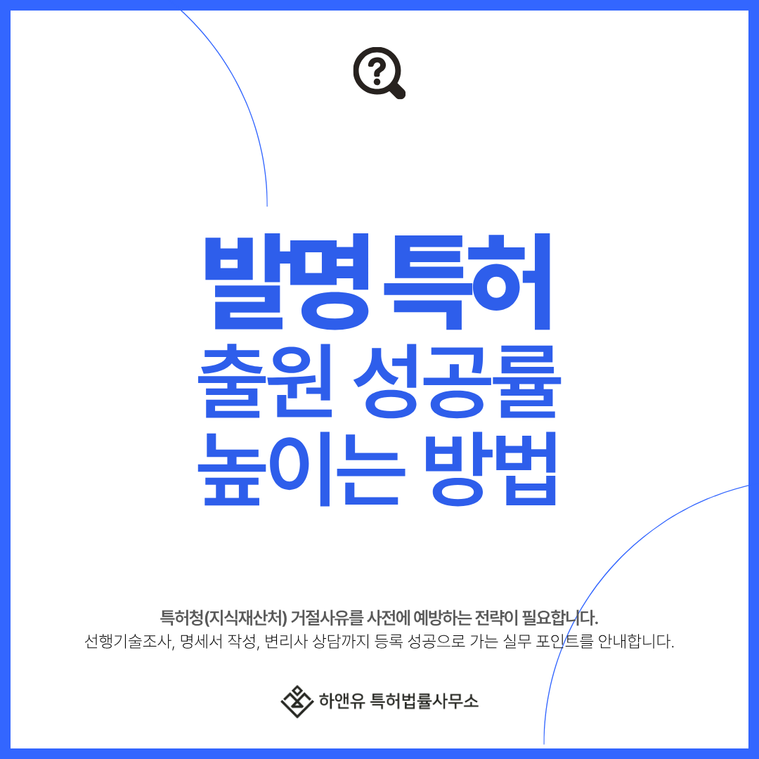 #발명특허 #특허출원 #특허등록 #특허상담 #특허문의 #명세서작성 #선행기술조사 #OA대응 #변리사상담 #하앤유특허법률사무소