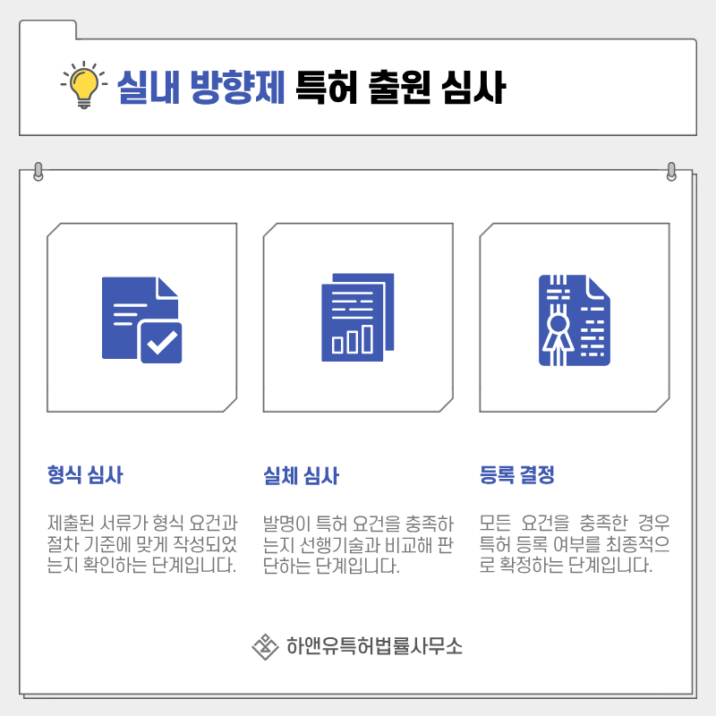 출원 후에는 서류 형식과 요건을 확인하는 방식심사가 먼저 진행됩니다.