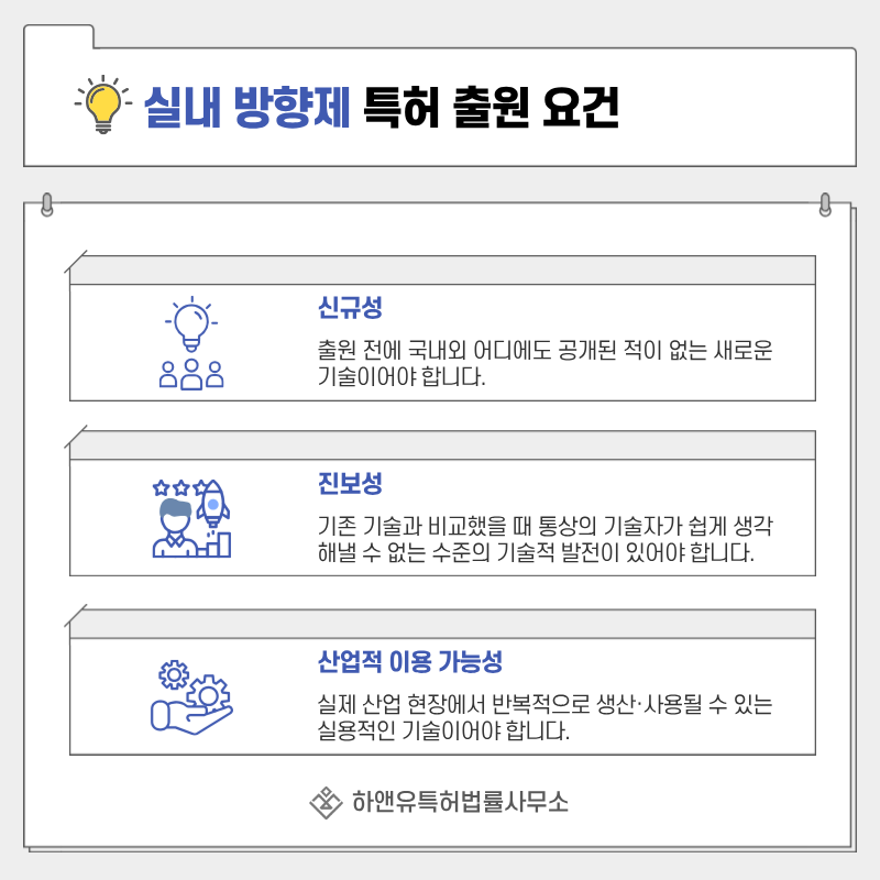 이 요건을 충족해야 특허가 단순 아이디어가 아닌 산업적 가치가 있는 기술로 인정됩니다.