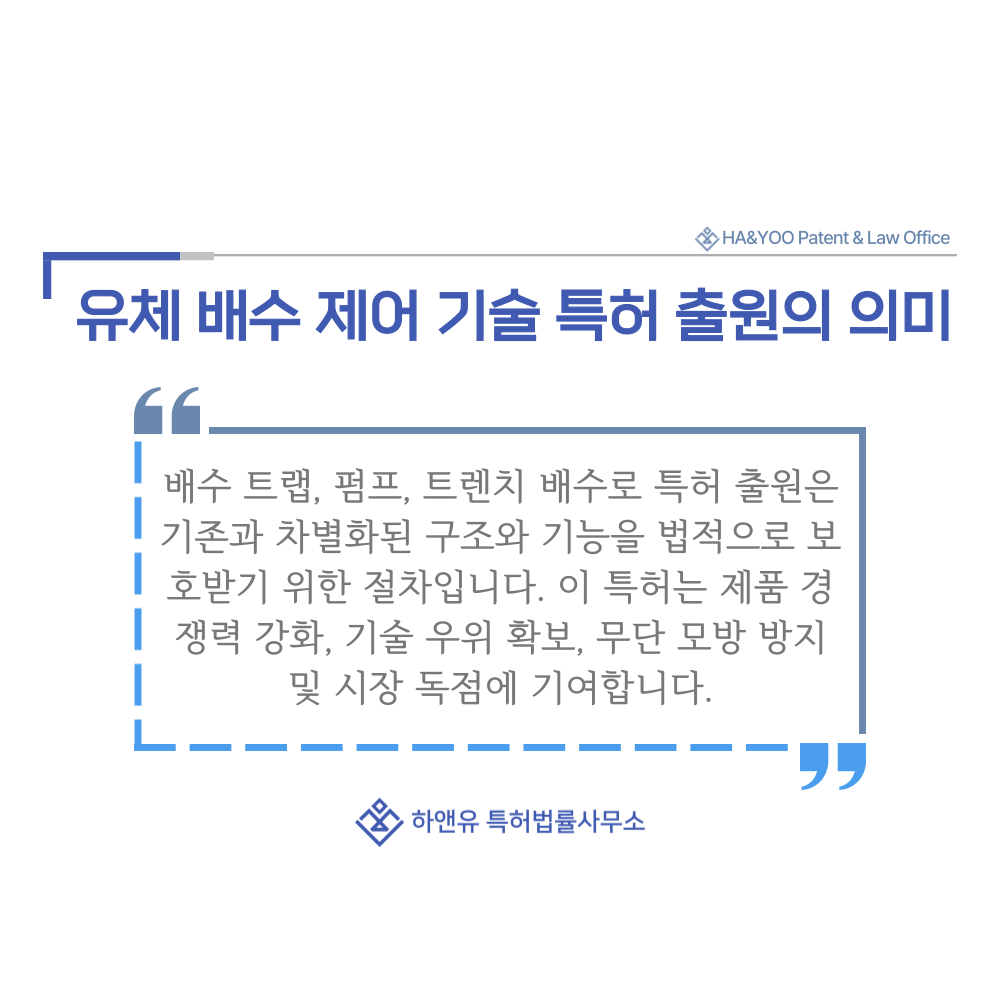 유체배수제어기술, 배수트랩, 펌프, 트렌치배수로, 특허, 특허출원, 특허등록, 특허권, 특허권출원, 특허권등록, 특허출원방법, 특허등록방법, 특허절차, 특허효력, 특허권출원방법, 특허권등록방법, 특허권절차, 특허권효력, 분야, 특허분야, 분야특허등록, 분야특허방법, 분야특허권등록, 하앤유, 특허변리사, PatentRegistration, PatentApplication, Patent_Registration, Patent_Application, 하앤유특허법률사무소
