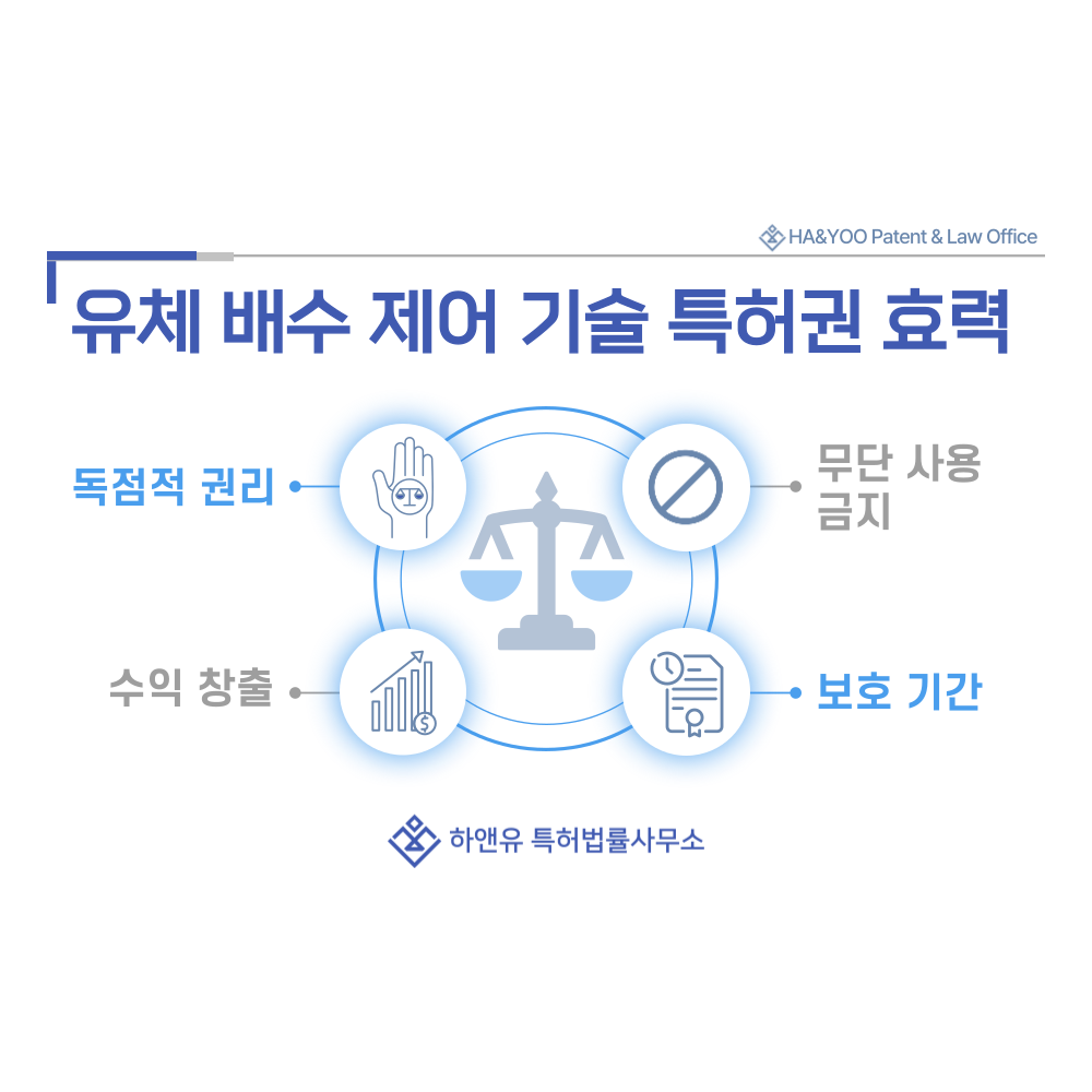 특허권자는 해당 배수 기술을 독점적으로 실시할 수 있으며, 제조·사용·판매·수입 등에 대한 배타적 권리를 가집니다.
