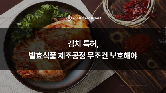 이때 김치 특허가 없다면, 제품의 성분 분석과 공정 유추를 통해 유사제품이 시장에 진입하는 것을 막기 매우 어렵습니다.