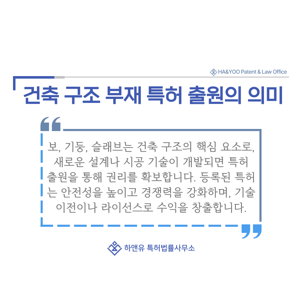 따라서 보, 기둥, 슬래브 관련 특허 출원은 건축 안전성과 산업 경쟁력을 높이는 중요한 수단입니다.