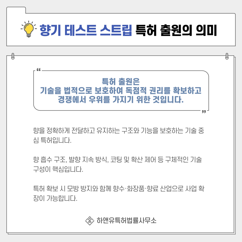 단순한 종이 시향 도구를 보호하는 것이 아니라 향을 정확하게 전달하고 유지하는 구조와 기능을 권리로 확보하는 과정입니다.