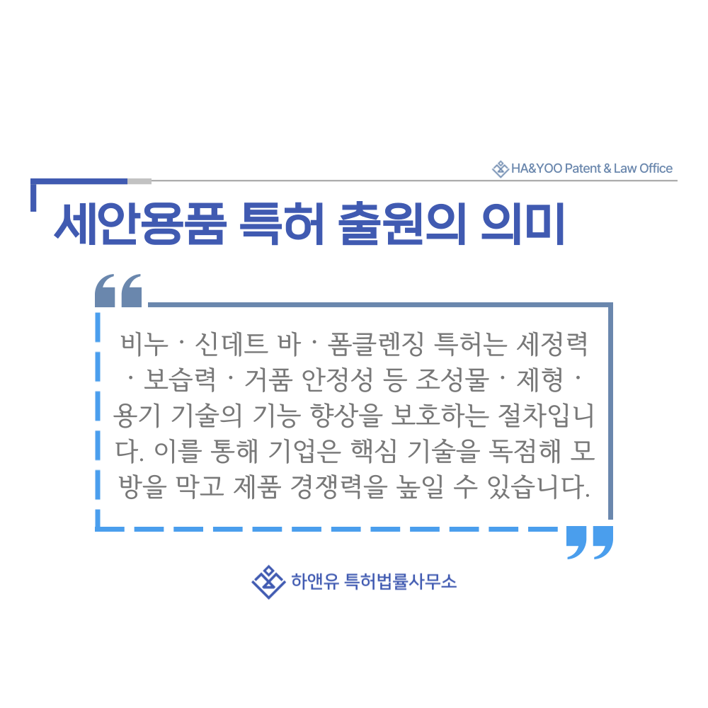 특히 뷰티·세정 제품 시장처럼 유사 제품이 빠르게 등장하는 분야에서는 법적 보호의 중요성이 더욱 큽니다.