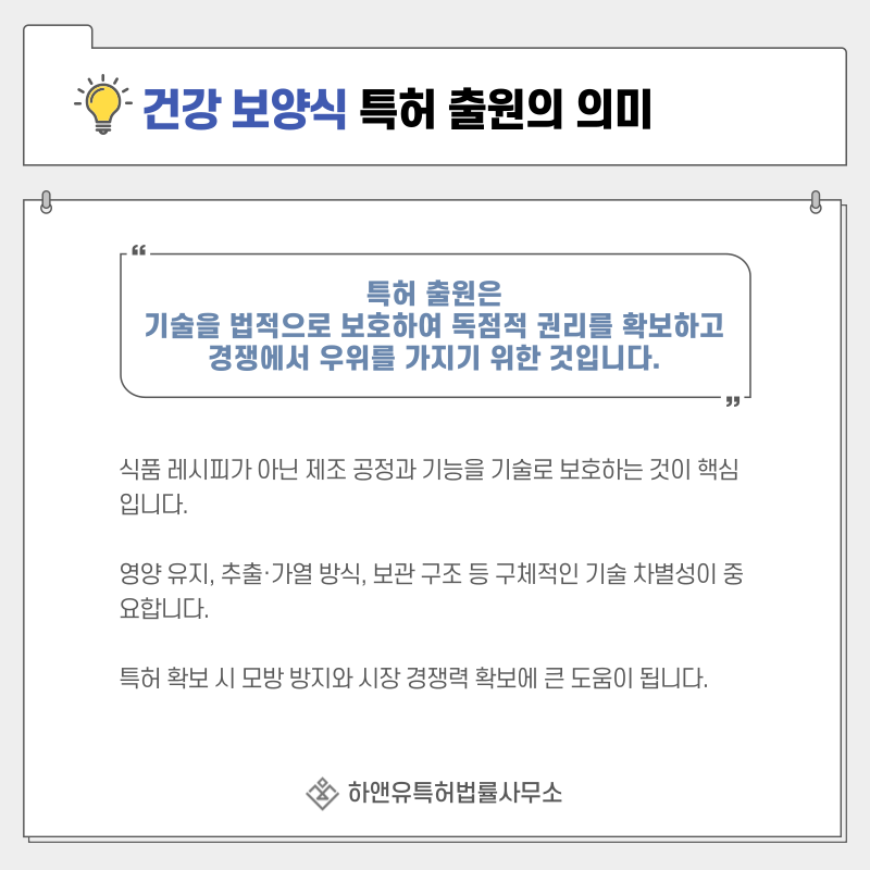 특히 밀키트와 간편식처럼 확장성이 높은 시장에서는 특허가 사업 확장의 핵심 기반이 됩니다.