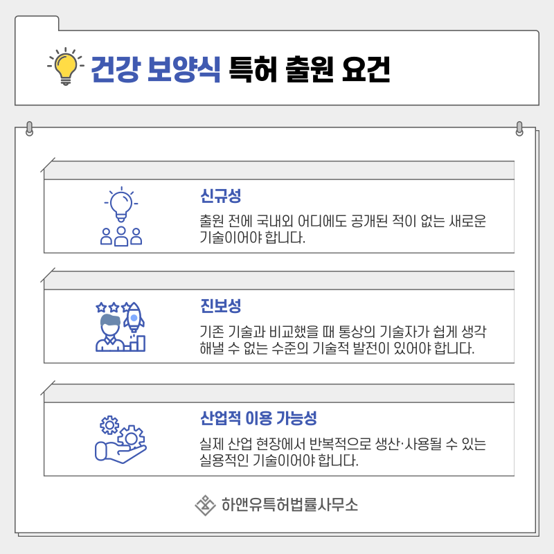 3. 건강 보양식, 삼계탕, 백숙, 장어탕, 추어탕, 밀키트, 간편식, 보강식 특허 출원 및 등록 요건