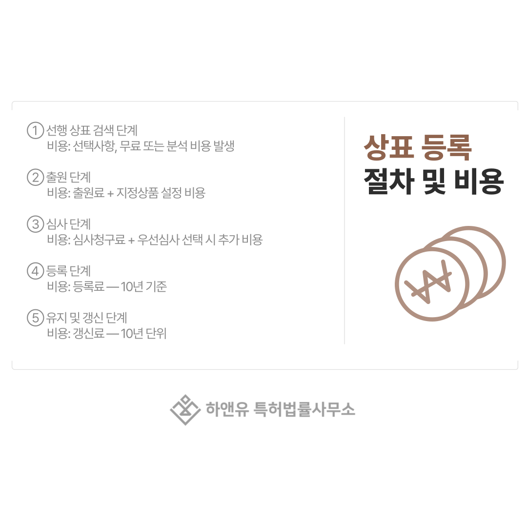 특히 상표가 사업의 핵심 브랜드로 성장한 이후에는 유지·갱신 비용이 단순 비용이 아니라 브랜드 자산을 유지하는 보호 비용의 의미가 강해집니다.