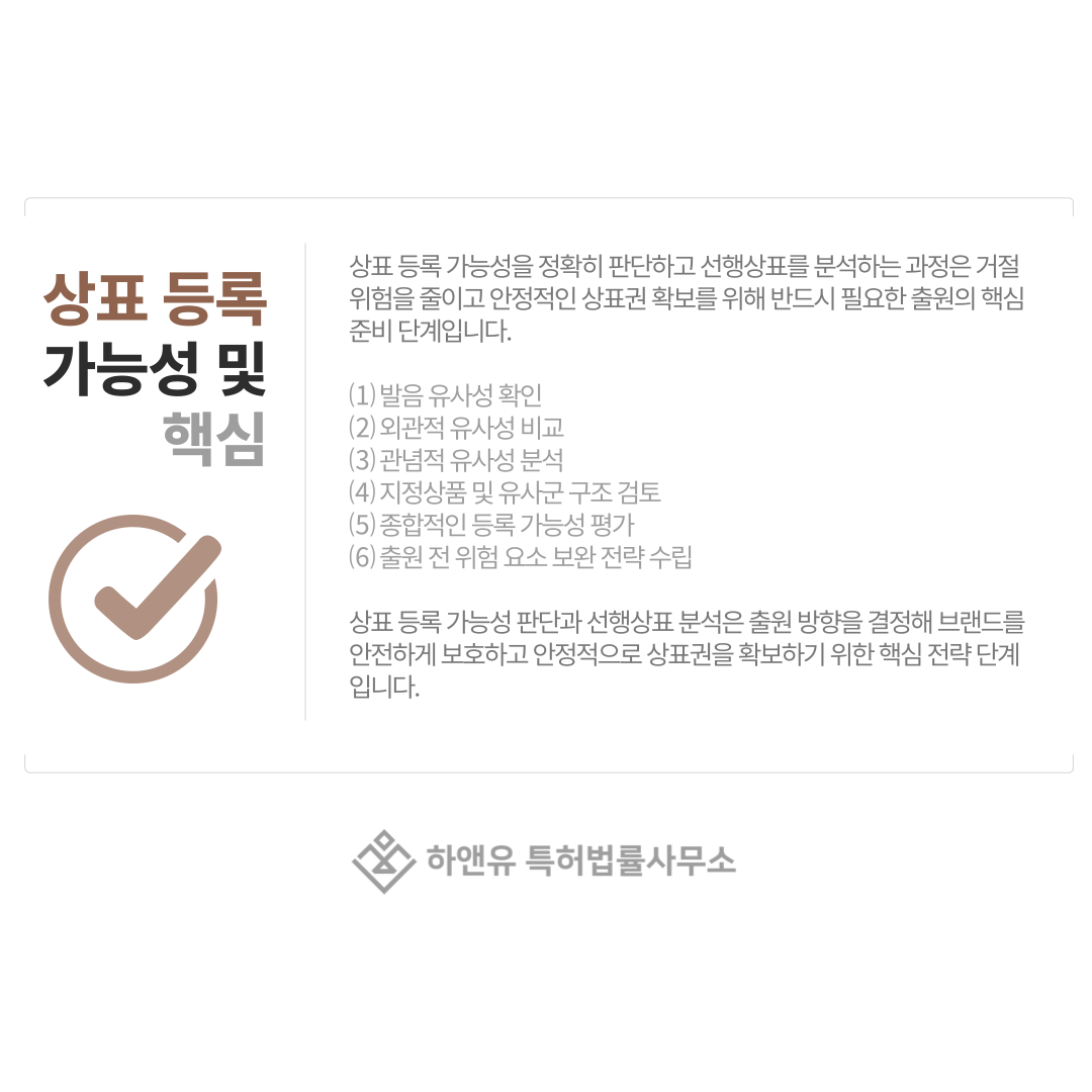 상표 등록 가능성 판단과 선행상표 분석은 단순 검색이 아니라 상표 출원 전체의 방향을 결정하는 전략적 과정입니다.