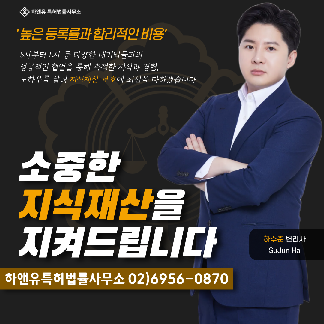 안녕하세요, 하앤유특허법률사무소의 하수준 변리사입니다.