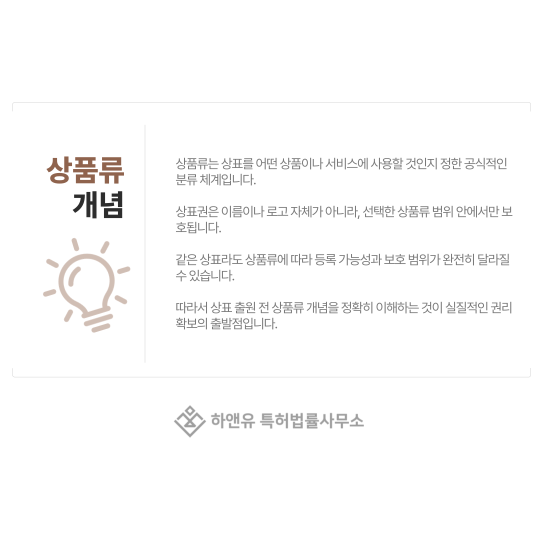 결국 상품류 개념을 정확히 이해하는 것은 상표 출원의 기본이자 출발점입니다.