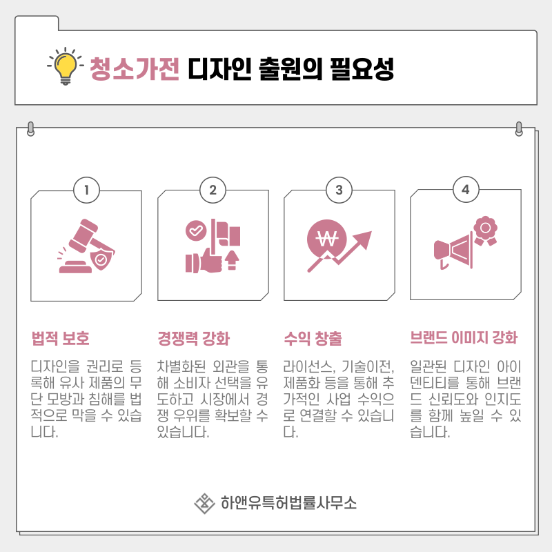 생활가전, 홈클리닝, 위생관리 기기, 청소가전과 같은 제품의 디자인 출원은 단순한 외형 보호를 넘어