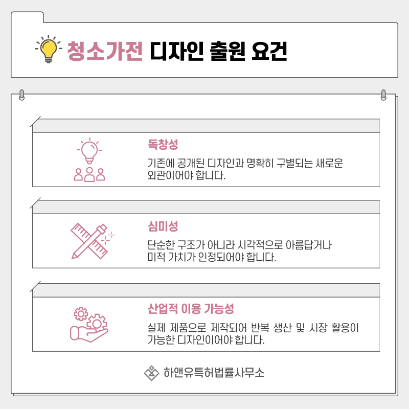 3. 생활가전, 홈클리닝, 위생관리 기기 가전, 청소가전, 장비 디자인 출원 및 등록 요건