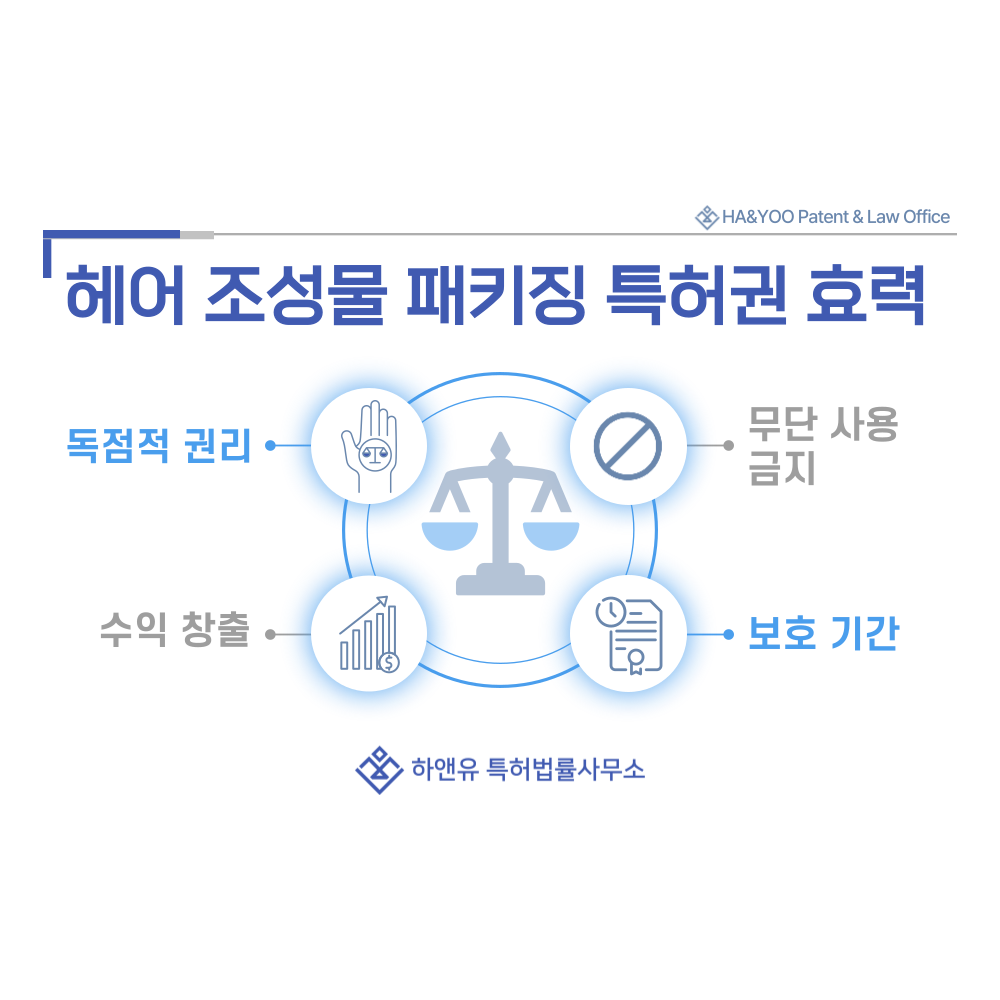 특허권을 확보하면 타인이 동일하거나 유사한 조성물, 용기, 패키징 기술을 무단으로 사용하는 것을 법적으로 막을 수 있습니다.
