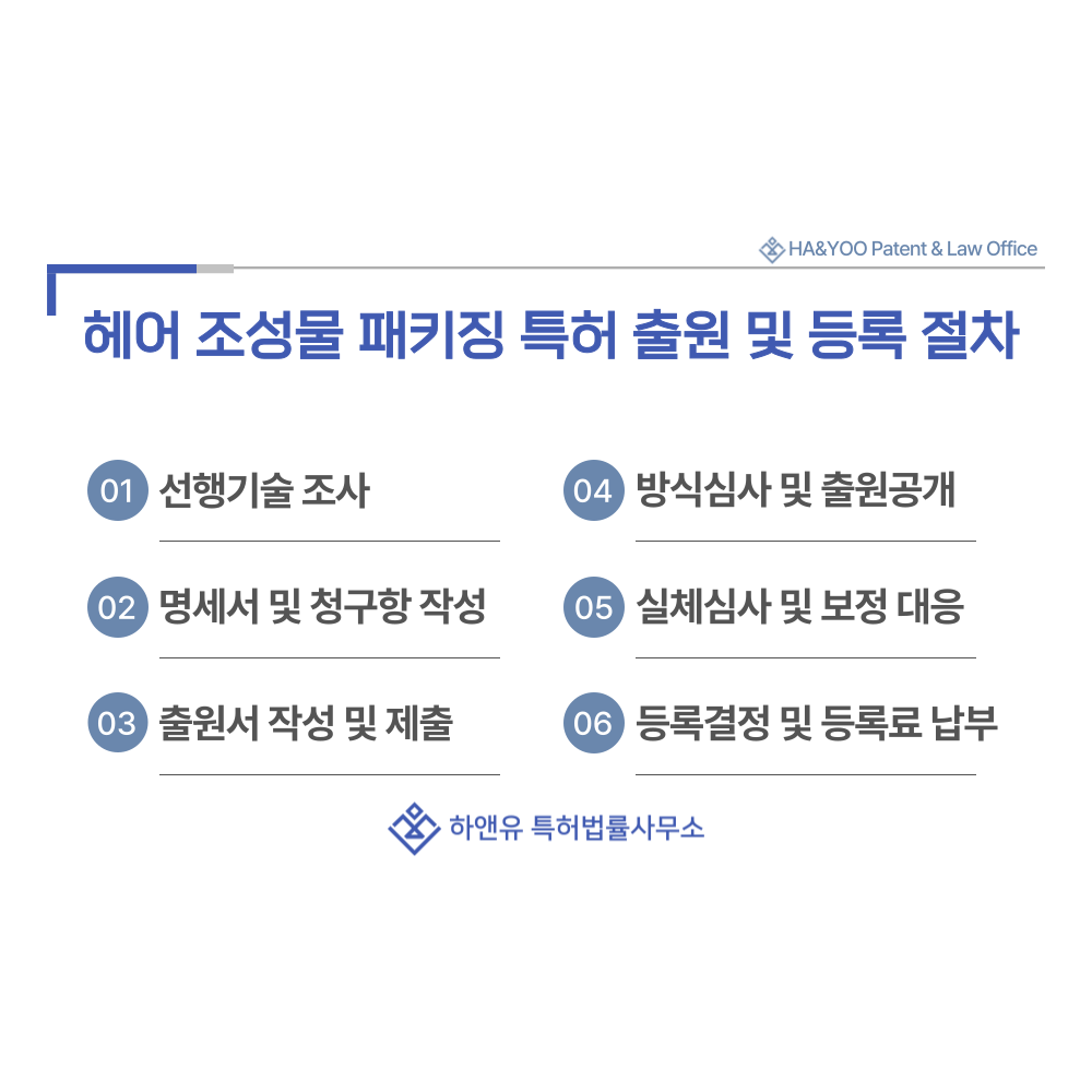 샴푸, 린스, 트리트먼트, 젤, 왁스 등의 조성물이나 용기, 패키징 기술을 출원하기 전에는 유사한 기술이 이미 공개되어 있는지를 확인해야 합니다.