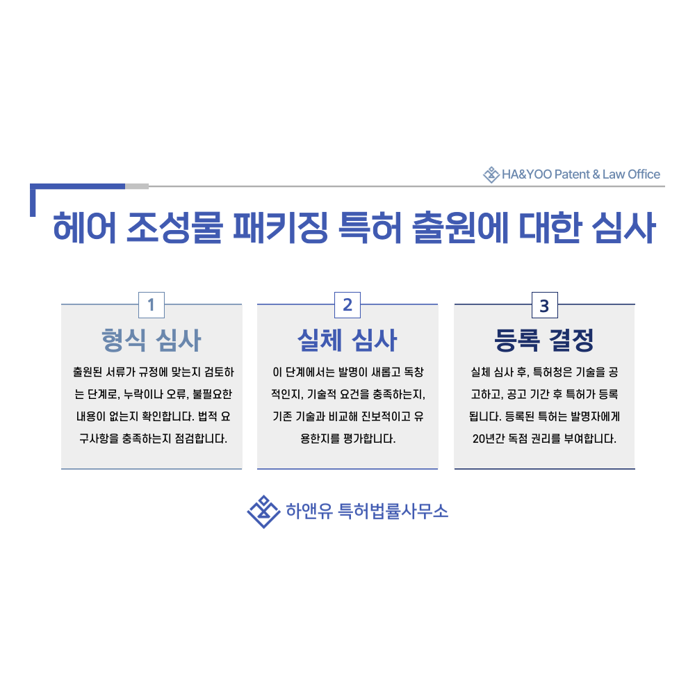 샴푸, 린스, 트리트먼트, 젤, 왁스 조성물이나 용기, 패키징 특허 출원은 먼저 서류의 형식 요건을 검토하는 형식심사를 거칩니다.