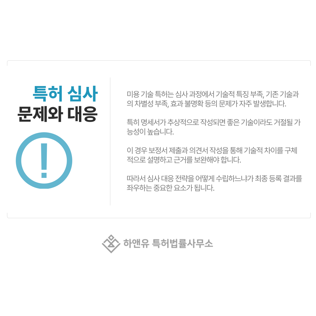 미용 기술 특허는 심사 과정에서 여러 문제가 발생할 수 있습니다.