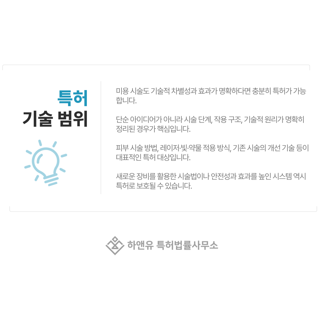 많은 분들이 “미용 시술도 특허가 되나요?”라고 질문하십니다.