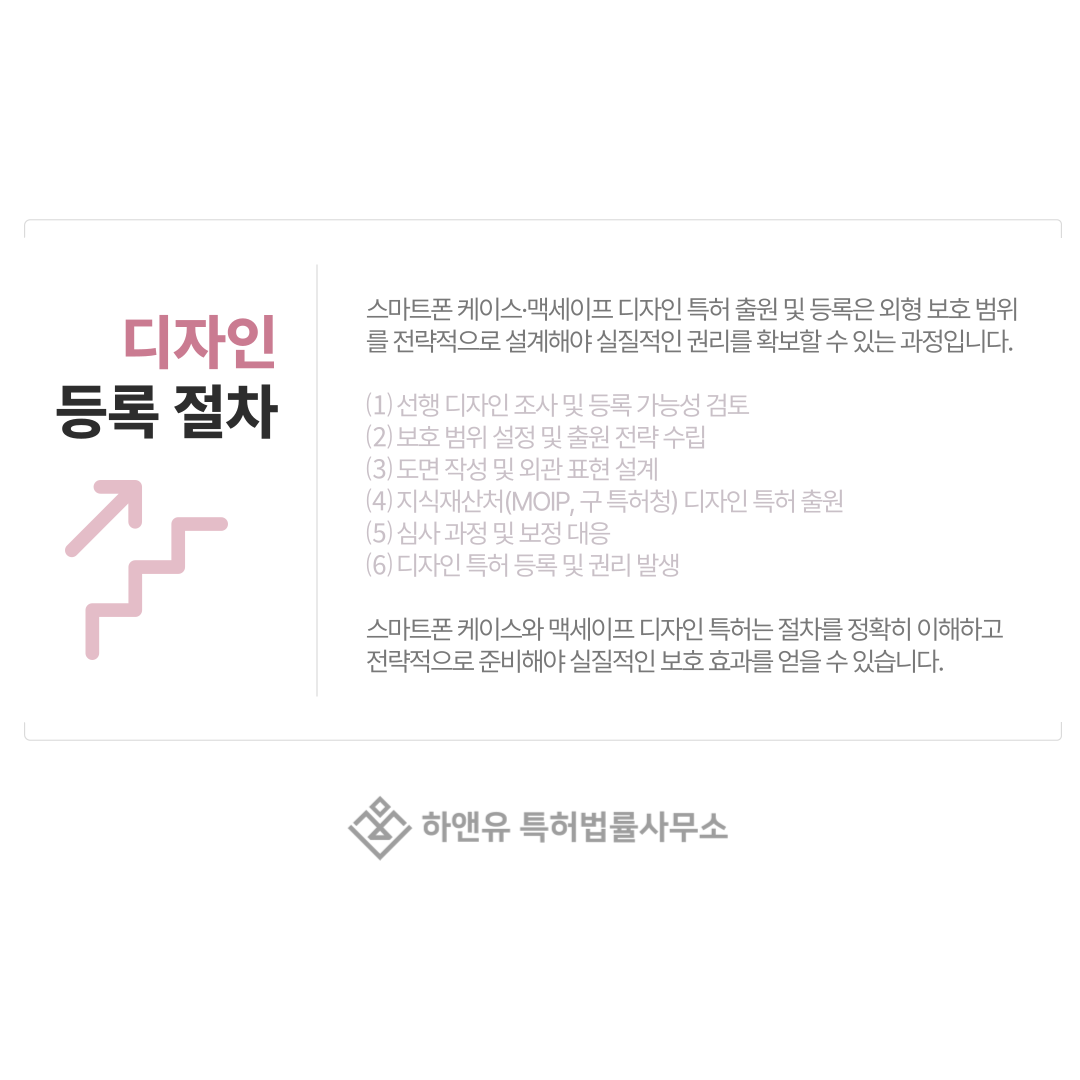 스마트폰 케이스·맥세이프 디자인 특허 출원 및 등록 절차는 단순히 서류를 접수하는 과정이 아닙니다.