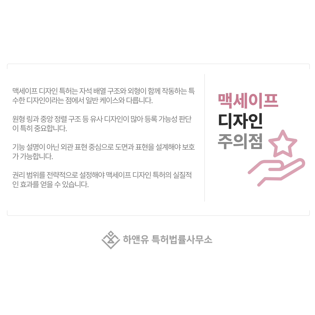 이 특수성을 이해하고 준비해야 맥세이프 디자인 특허 출원 및 등록의 실질적인 효과를 얻을 수 있습니다.