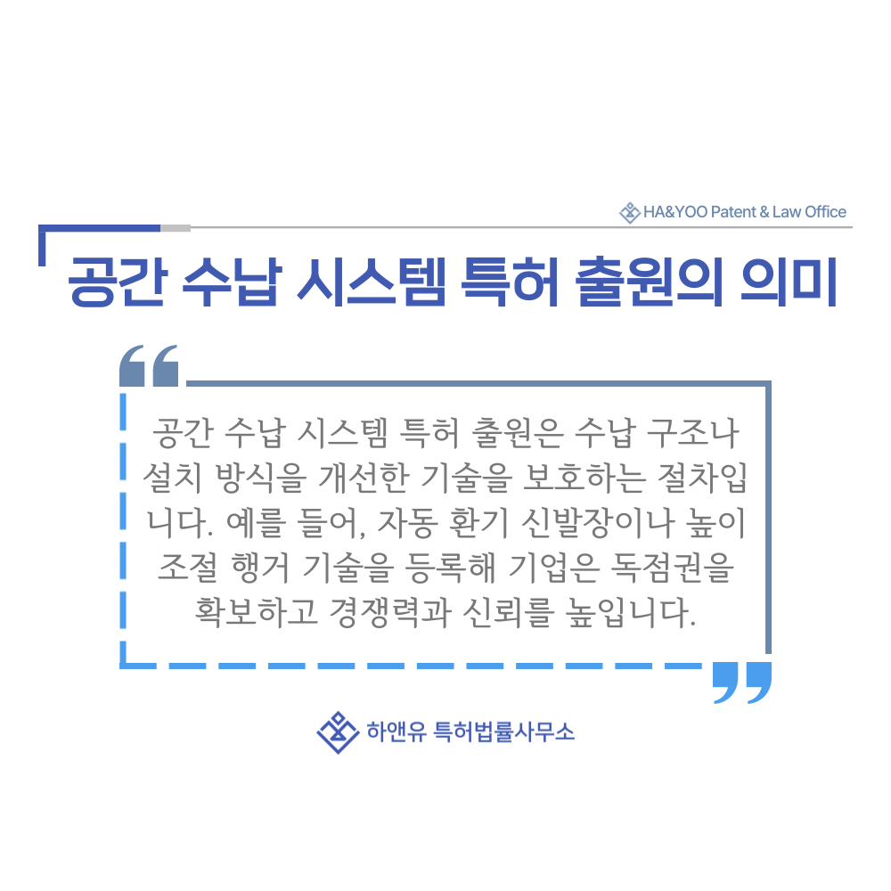 #공간수납시스템 #신발장 #행거 #세면대장 #거울장 #수건선반 #특허 #특허출원 #특허등록 #특허권 #하앤유 #특허변리사 #PatentRegistration #PatentApplication