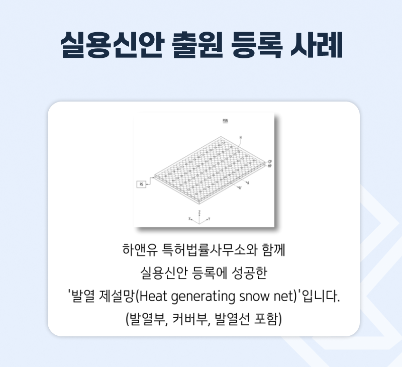 ▼ 실용신안 '발열 제설망(Heat generating snow net)' 등록 성공사례 보러가기 클릭 ▼