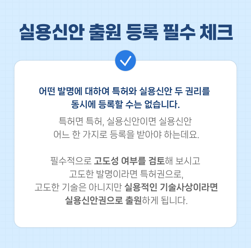 특허로는 등록이 어려운 경우라도 실용신안으로 등록이 가능한 경우가 있을 뿐,