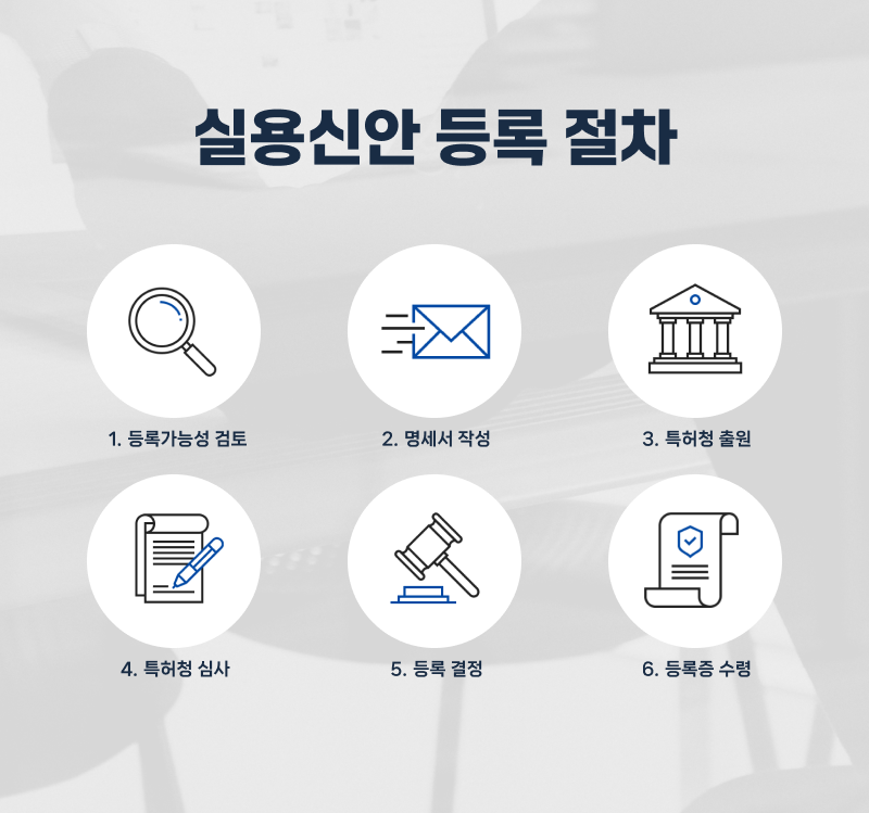 실용신안은 출원, 심사, 등록 세 가지 단계로 이루어집니다.