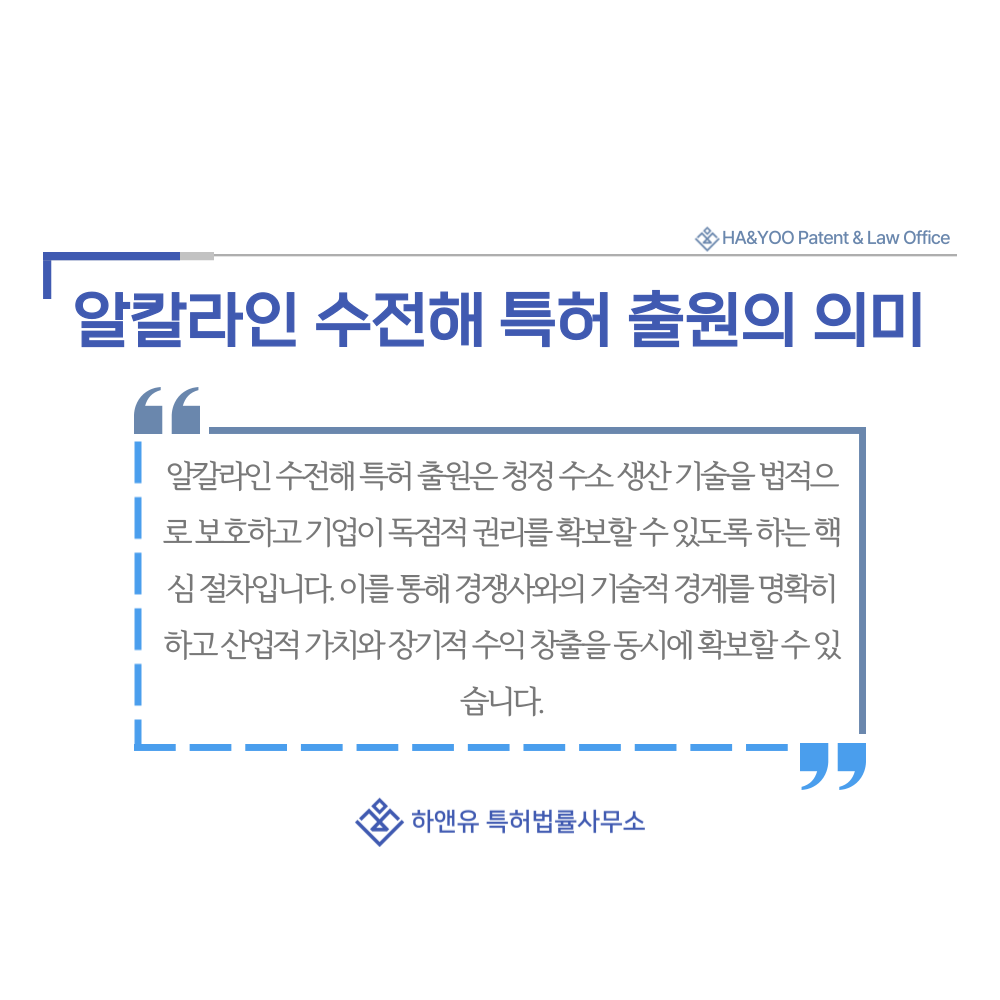 #알칼라인수전해 #수소생산특허 #청정수소기술 #재생에너지수소 #하앤유특허법률사무소
