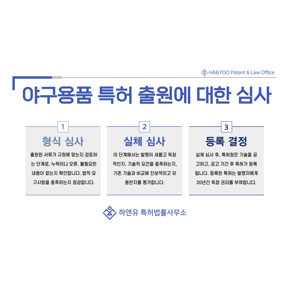 5. 야구용품, 배트, 야구공, 글러브, 포수장비, 보호대 특허 출원에 대한 심사