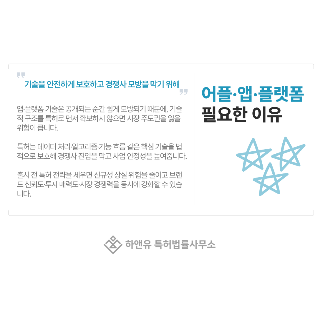 어플·앱·플랫폼 특허가 필요한 이유는 기술을 안전하게 보호하고 경쟁사 모방을 막기 위해서입니다.
