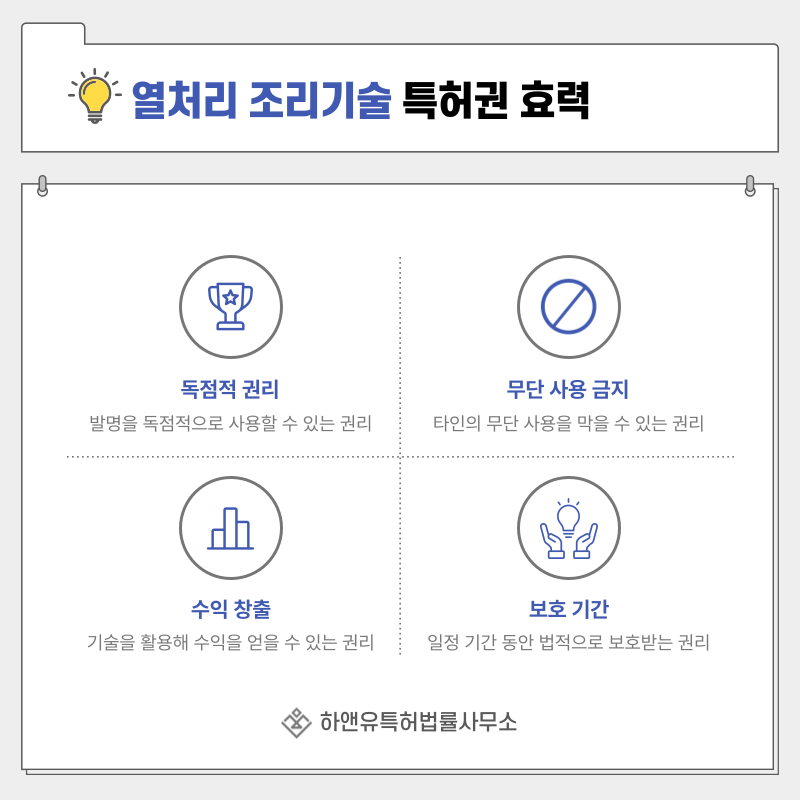 등록료 납부가 완료되면 해당 조리 기술은 법적으로 보호되는 특허권으로 확정됩니다.