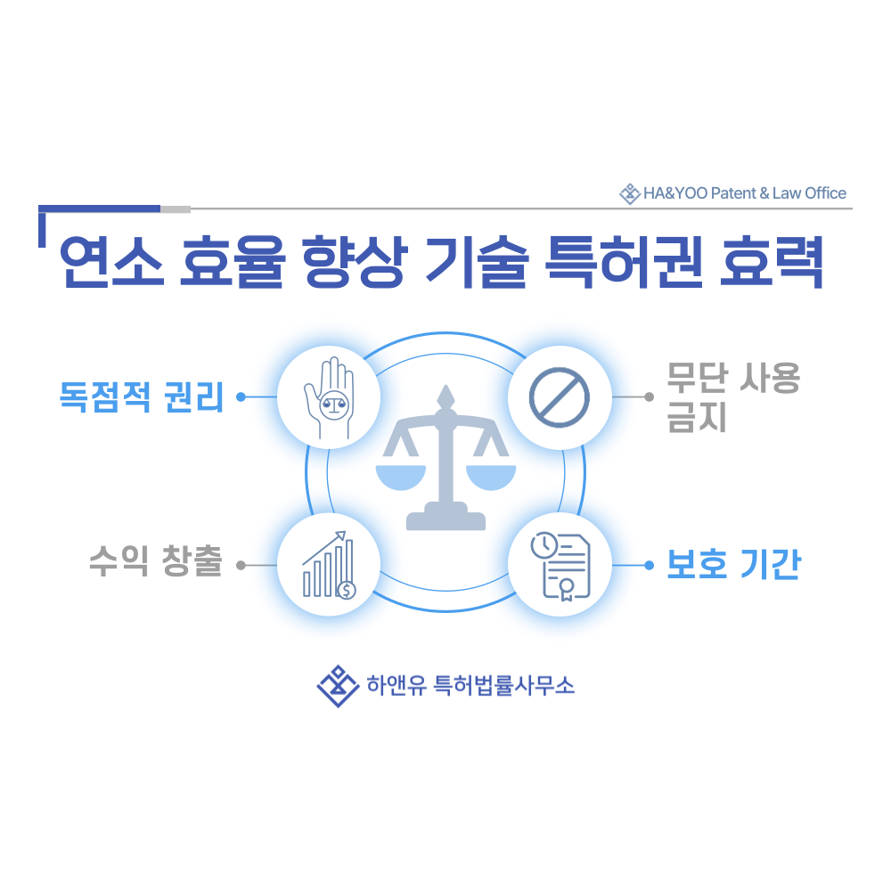 특허권은 단순한 권리 보호를 넘어 경제적 자산으로 활용됩니다. 권리자는 기술을 직접 적용해 제품을 개발·판매할 수도 있고, 다른 기업에 라이선스를 허여해 로열티를 받을 수도 있습니다. 연소 효율 향상 기술은 발전소, 자동차, 보일러 등 다양한 산업에 적용 가능성이 크기 때문에, 특허권을 통해 안정적이고 장기적인 수익 창출이 가능합니다.