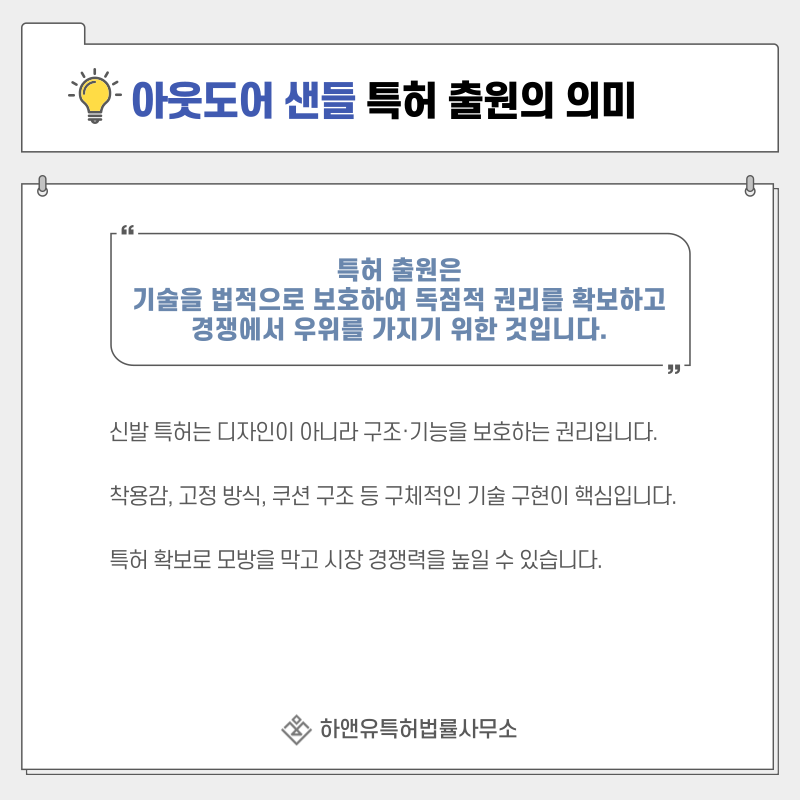 단순한 디자인 보호가 아니라 신발의 구조와 기능을 법적으로 권리화하는 과정입니다.
