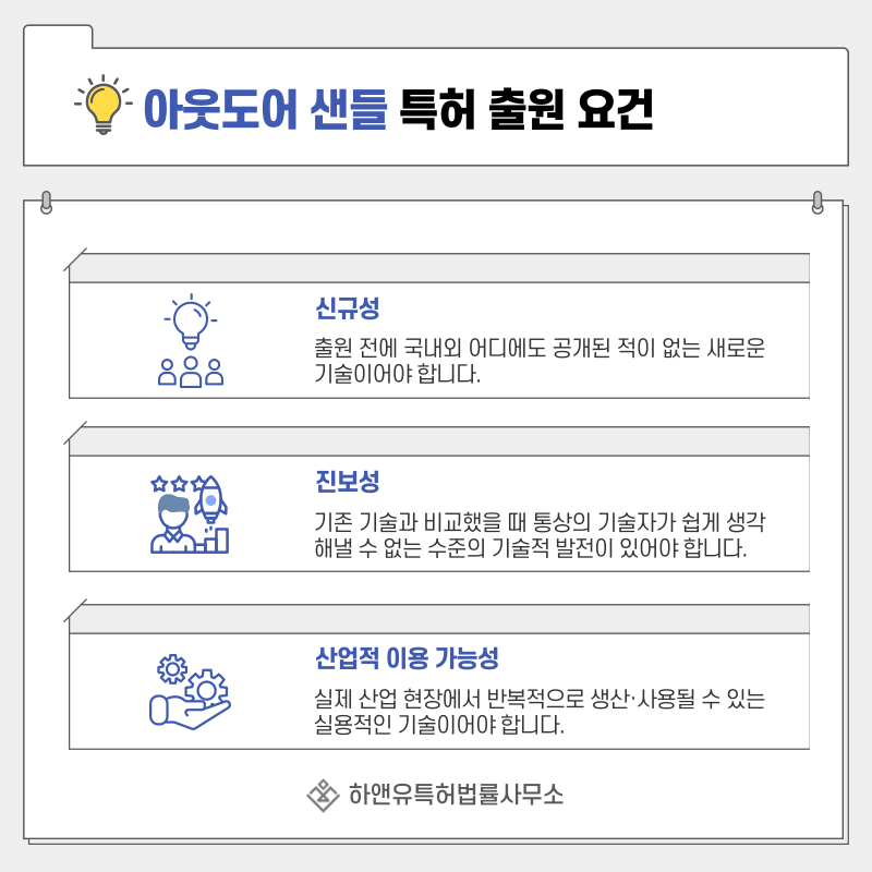 3. 아웃도어 샌들, 오픈토, 퍼, 패딩, 버클, 스트랩, 클레디에이터, 토링 슈즈, 슬리퍼, 샌들 특허 출원 및 등록 요건