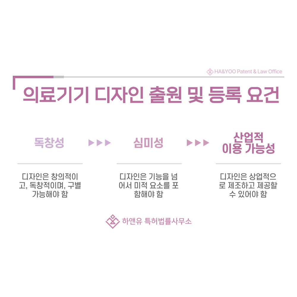 이 요건이 충족되어야 의료기기 디자인이 상업적으로 활용될 수 있으며, 기업의 실질적 경쟁력으로 이어집니다.