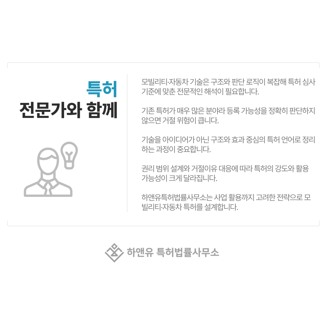 #모빌리티특허 #자동차특허 #자동차기술특허 #모빌리티산업 #전기차특허 #자율주행특허 #기술특허 #특허출원 #특허등록 #특허권 #PatentRegistration #PatentApplication #특허사무소 #특허법률사무소 #하앤유특허법률사무소