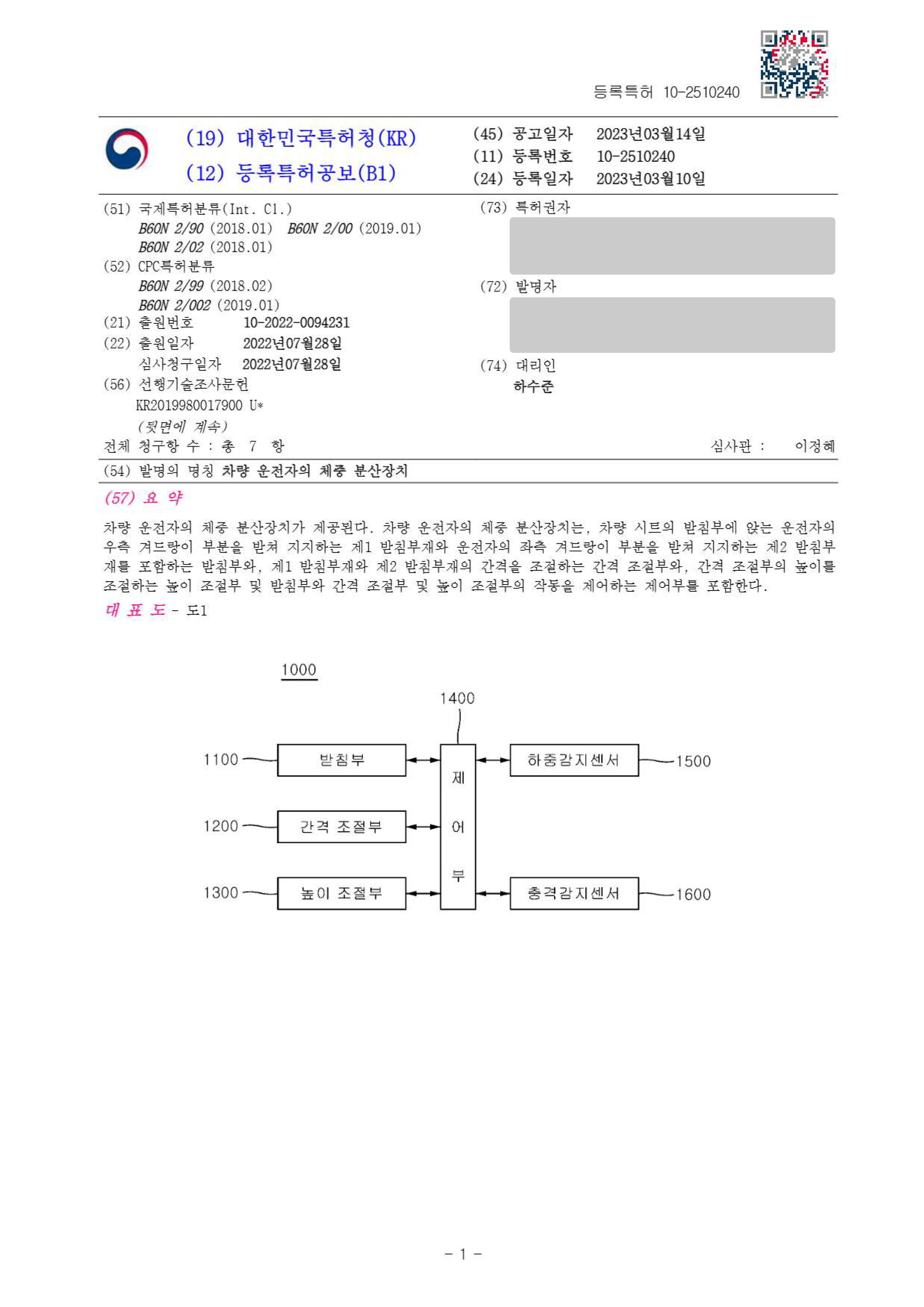 하앤유특허법률사무소를 통해 출원 등록된 모빌리티·자동차 등록사례입니다.