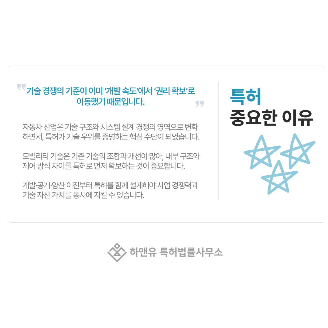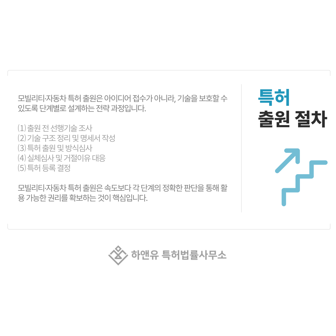 이러한 이유로 모빌리티·자동차 특허는 단순히 출원 절차를 진행하는 것이 아니라,
