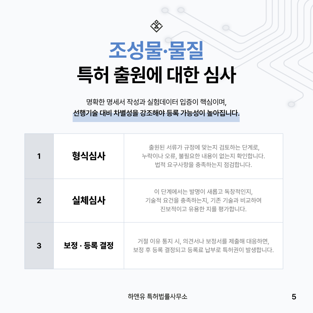 ⑤ 조성물, 물질 특허 심사 과정 – 의견서·보정서·등록 결정