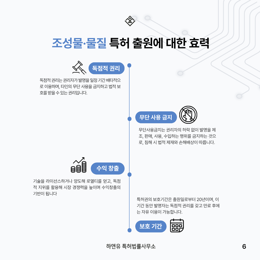 ⑥ 조성물, 물질 특허권 효력과 보호 범위 – 무단 사용 금지·라이선스