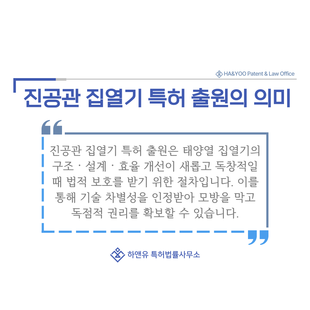 #진공관집열기 #집열기술 #Evacuated #Selective #특허 #특허출원 #특허등록 #특허권 #하앤유 #특허변리사 #PatentRegistration #PatentApplication