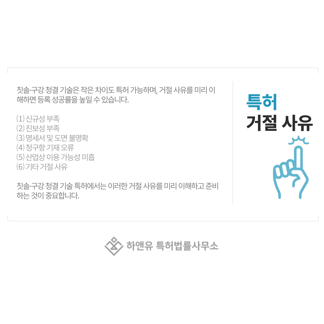 칫솔·구강 청결 기술 특허에서는 이러한 거절 사유를 미리 이해하고 준비하는 것이 중요합니다.