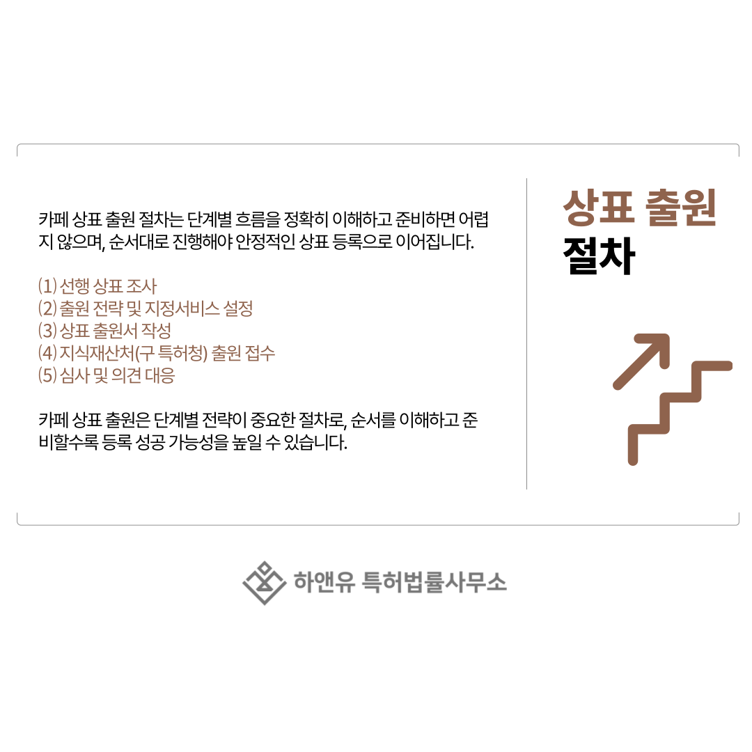카페 상표 출원 절차는 단순한 서류 접수가 아니라 각 단계마다 전략과 경험이 필요한 과정입니다.