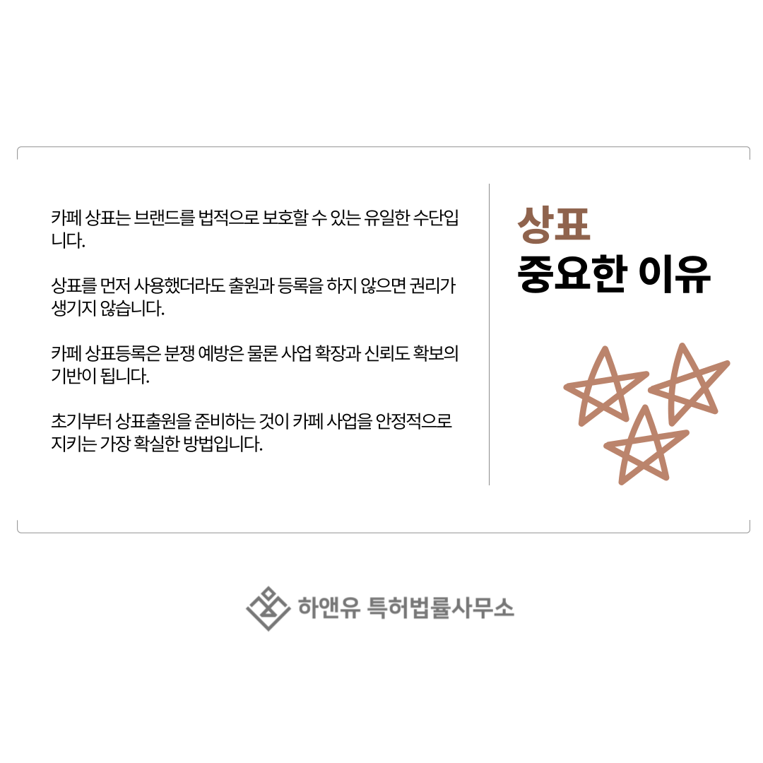 초기부터 상표출원과 등록을 체계적으로 진행하는 것이 카페 사업을 오래 안정적으로 운영하는 가장 확실한 방법입니다.